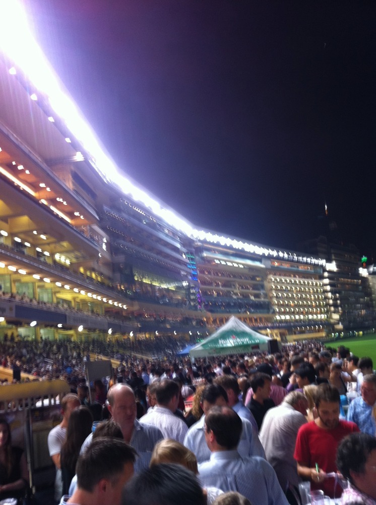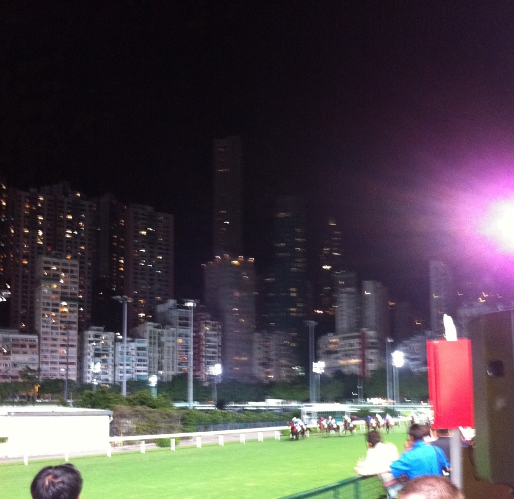 Went to the Happy Valley racecourse last night. It was packed an buzzing on a beautiful, warm night. It’s hard not to get excited when you see the horses come around the turn. Once I figured out the betting slips, I made a few wagers…lost my money but had a great time. [Sorry the picture quality is crap.]